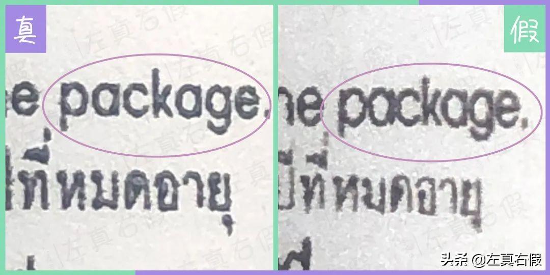 2.細(xì)看正面字體真假對(duì)比微有粗細(xì).