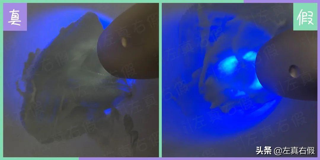 二、到了關(guān)鍵的地方,抹在臉上的膏體對(duì)比,這幾乎是真假比的部分!