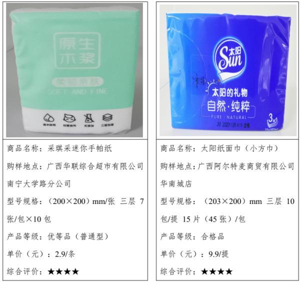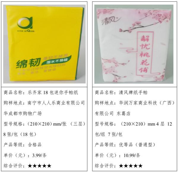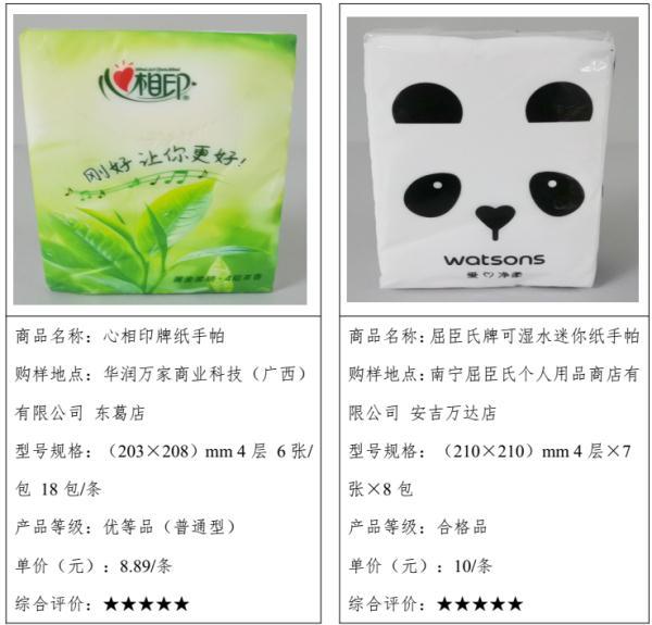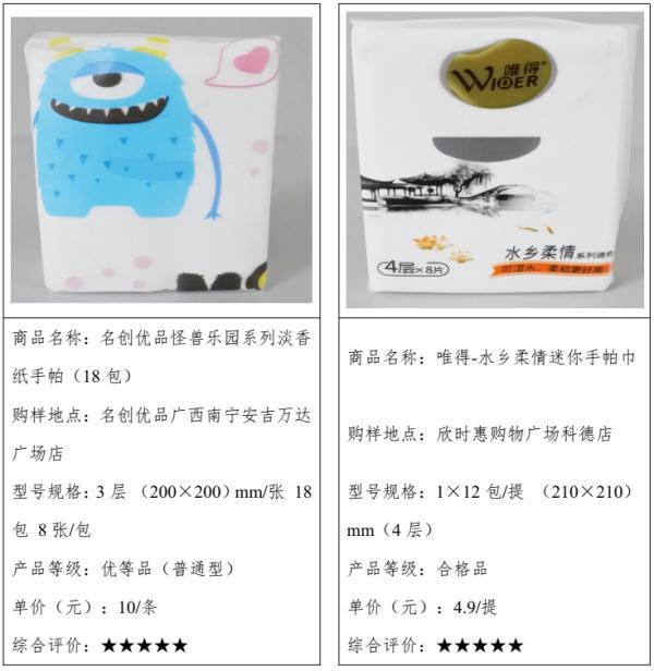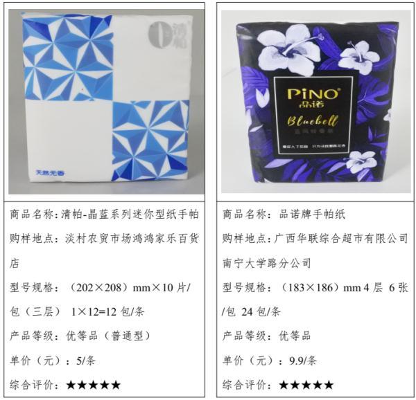 在15款手帕紙樣品中,12款樣品表現(xiàn),獲五星;3款樣品表現(xiàn)較好,獲四星。