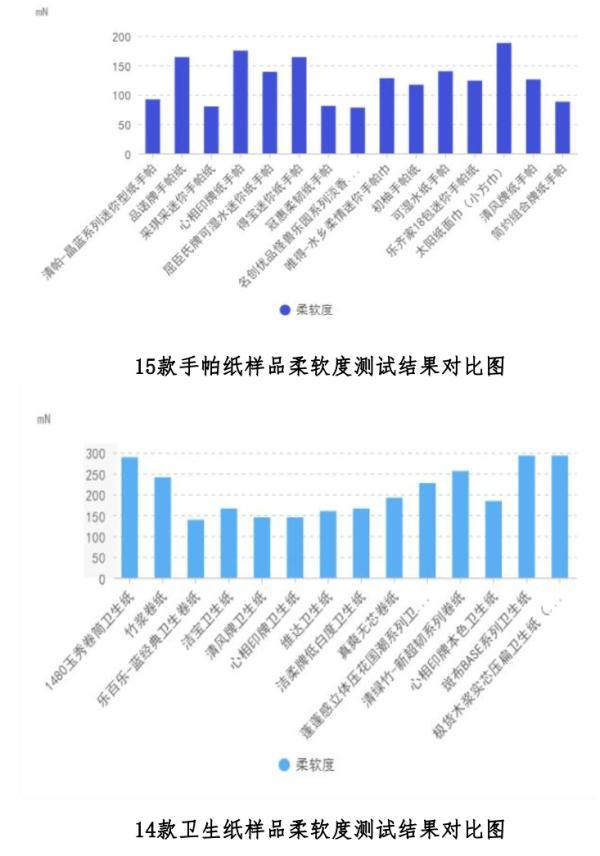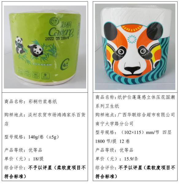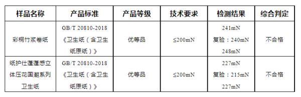 14款衛(wèi)生紙樣品中,彩桐竹漿卷紙、紙護仕蓬蓬感立體壓花國潮系列衛(wèi)生紙的柔軟度不符合標準,這2款衛(wèi)生紙樣品,產品明示均為優(yōu)等品,但柔軟度未達到優(yōu)等品的要求。