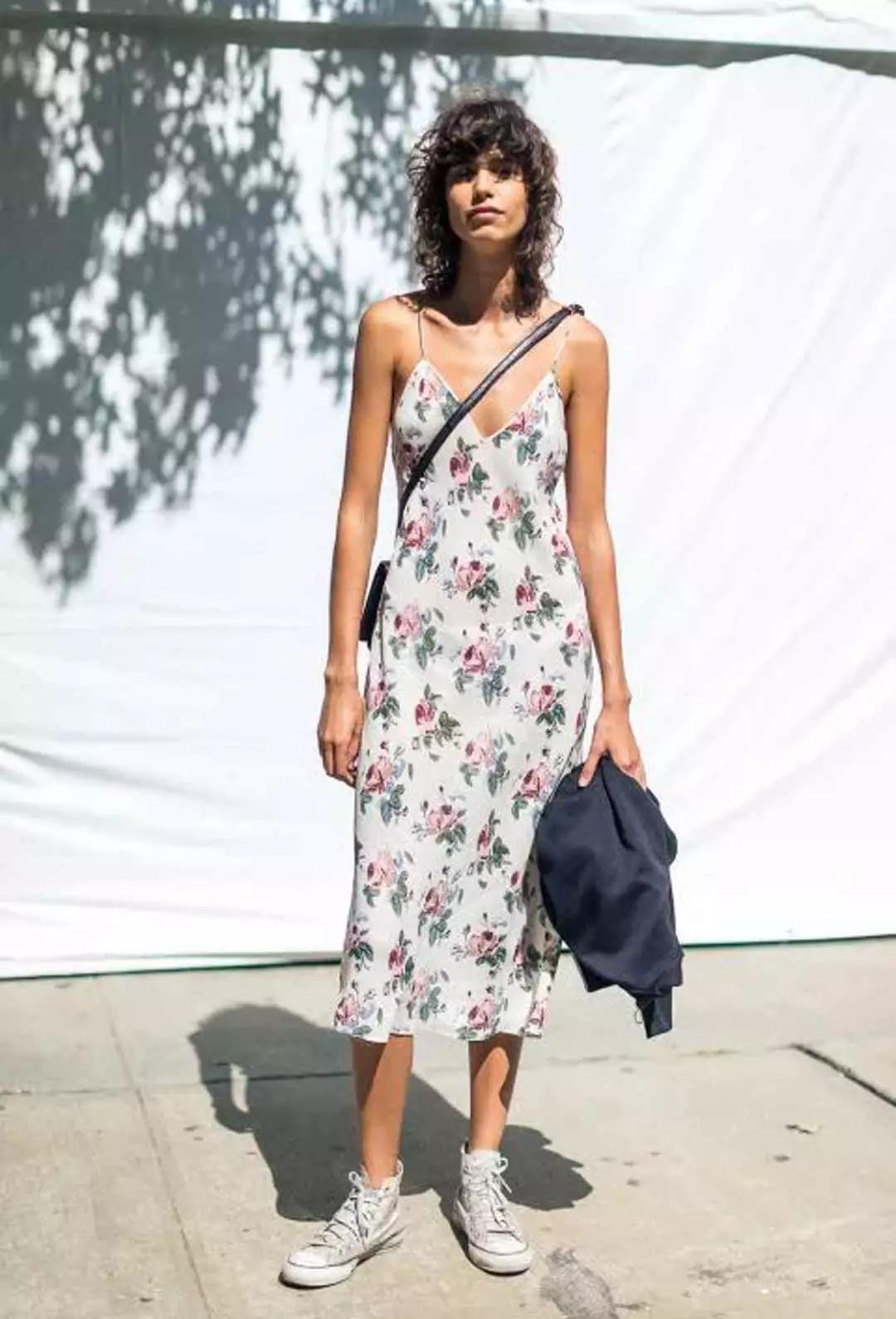 吊帶裙相比于其他三種來說挑剔性略強一些,比較適合胖瘦均勻的女生搭配,由于它露膚面積較多,在搭配時可以選擇一些輕薄的西服外套或者防曬衣,純色的吊帶裙適合與其他服裝套穿,但是碎花款式單穿會更減齡時尚哦!