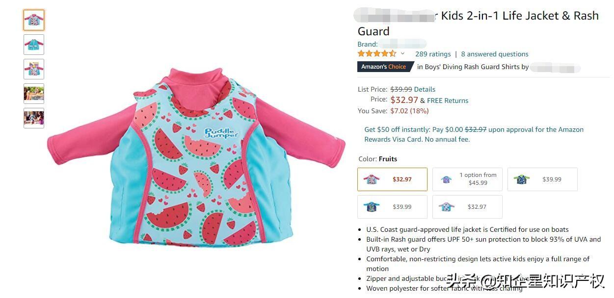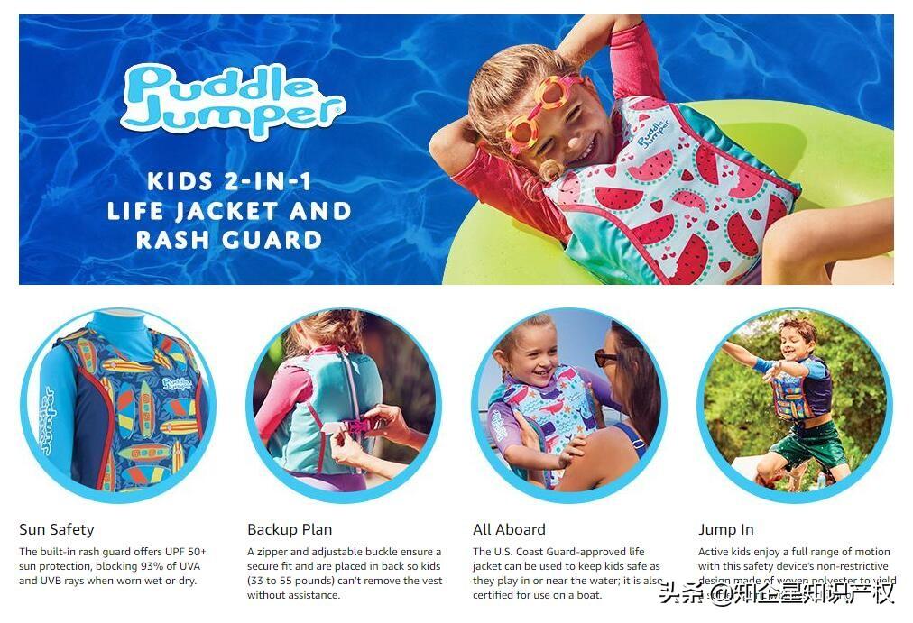 今天在瀏覽亞馬遜的時候,看到一款防曬救生兩用游泳衣,它是美亞站的Amazon'sChoicefor "puddle jumper 2 in 1 life jacket rash guard",售價32.97美金,留評292顆星。