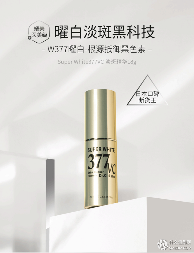 提起377,那就不能不提城野醫(yī)生這款精華。從去年開(kāi)始,在各大美妝平臺(tái)上,可以說(shuō)做到了誰(shuí)人不知誰(shuí)人不曉。號(hào)稱為平價(jià)版小燈泡,它主要功效就是阻黑凈斑,還有預(yù)防斑的形成。這款精華相對(duì)比較溫和,美白效果也要更好,既美白又抗氧化,好推開(kāi),不留泥。但是18g的量搭配420的售價(jià),著實(shí)也不算平價(jià)了。但是它是日本護(hù)膚界使用抗酸化美白活性成分White 377的產(chǎn)品,無(wú)化學(xué)合成劑添加,能修復(fù)暗斑,提亮膚色,美白凈化效果!是曲酸的10倍+,苯二酚的2100倍,熊果素的7000倍!配合美白的成分還有四己基癸醇抗壞血酸酯,屬于維C的一種衍生物,有維C美白祛斑的效果,但是更加溫和、穩(wěn)定,不易分解。另外產(chǎn)品中還含有維A衍生物,以及一些活性成分,具有抗氧化作用,對(duì)抗衰老也有一定的作用,是一款不錯(cuò)的產(chǎn)品。這種數(shù)據(jù),讓我們不由自主的就剁了好幾只手。喏,手,拿去!