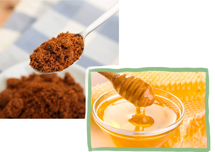② 紅糖+蜂蜜,揉搓洗凈后涂抹護(hù)膚乳。