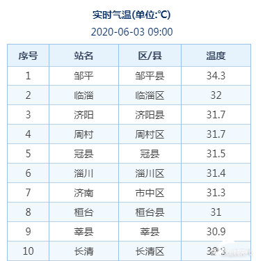 上午10時(shí),濱州鄒平的氣溫已沖上山東第一,躋身全國(guó)前十位。