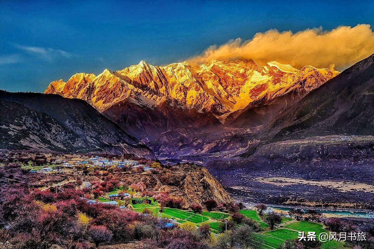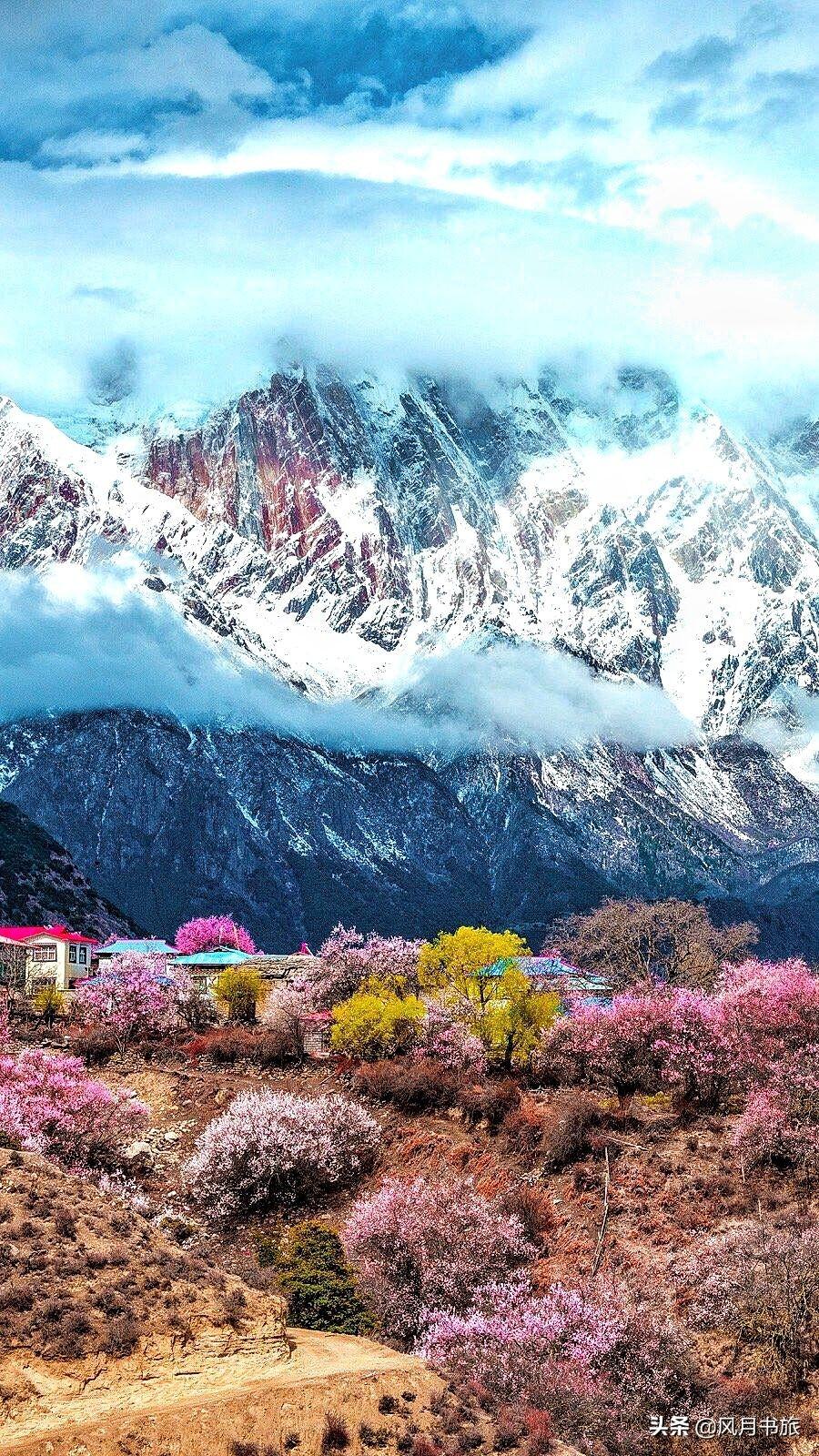 【波密桃花溝】密密麻麻的桃花綿延30多公里,遠(yuǎn)處的冰川雪山,近處桃花遮掩下色彩斑斕的藏式房屋,形成一大片浪漫的粉色海洋!