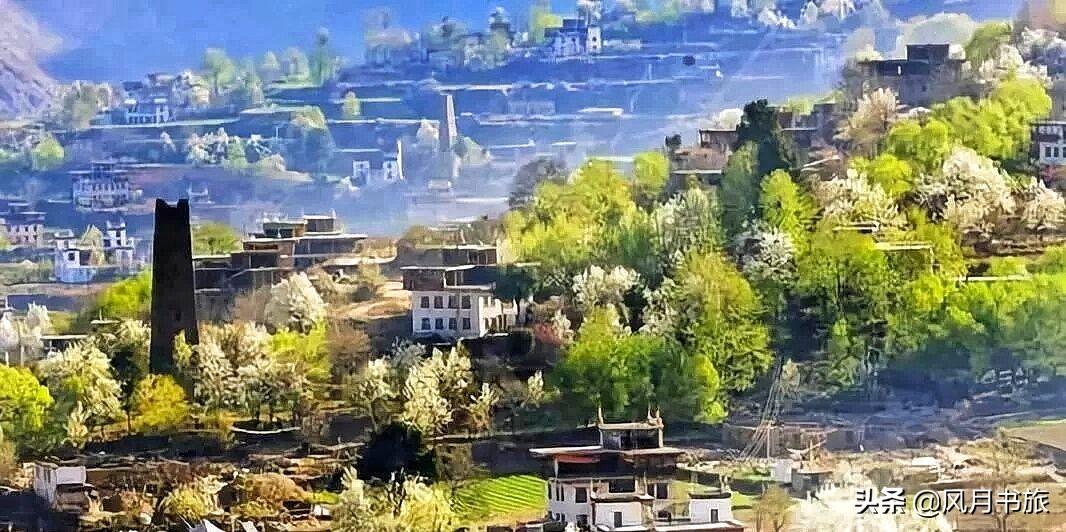 放眼望去,漫山遍野的梨花與藍(lán)天、白云、河流、麥地、藏寨、碉樓,共同繪就一幅幅渾然一體的“世外梨源”天開畫圖,彰顯出大金川這處雪域江南的壯闊與秀美。