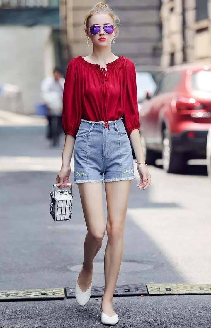 但夏天總不能天天一身黑白灰淺色系,看著怪單調(diào)的,還是顏色鮮艷點(diǎn)適合夏天,避免顯low好的辦法就是配上一件白T,又清涼又有活力。