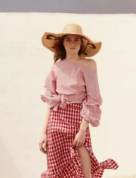 夏天穿撞色也比較多,看著亮眼又高級(jí),比如紅藍(lán),隨便一穿都有一股文藝復(fù)古的氣息。