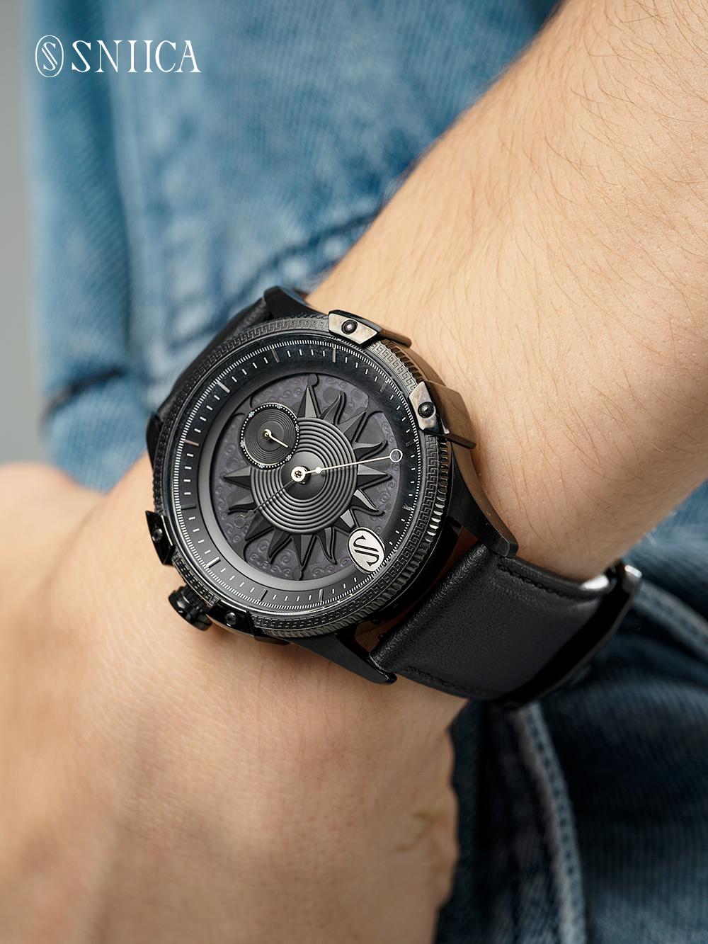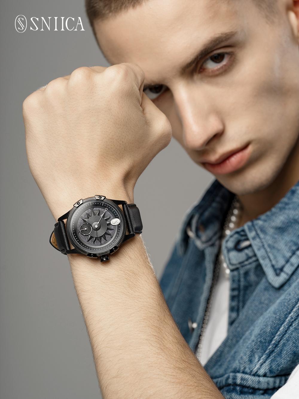 黑色一直都是經(jīng)典、、不過時的代名詞。除了各大時裝愛用黑色,設計師們也不約而同地把黑色運用到手表上,史尼嘉達芬奇8026M系列的極夜永黑手表,在擁有利落線條的同時,把黑色的酷和隨性拿捏得剛剛好~~