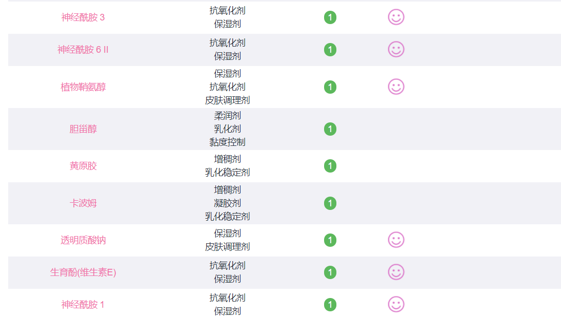 成分方面,除了1種防腐劑,無香精、色素,活性成分以神經(jīng)酰胺類為主,抗氧化、保濕果杠杠的。