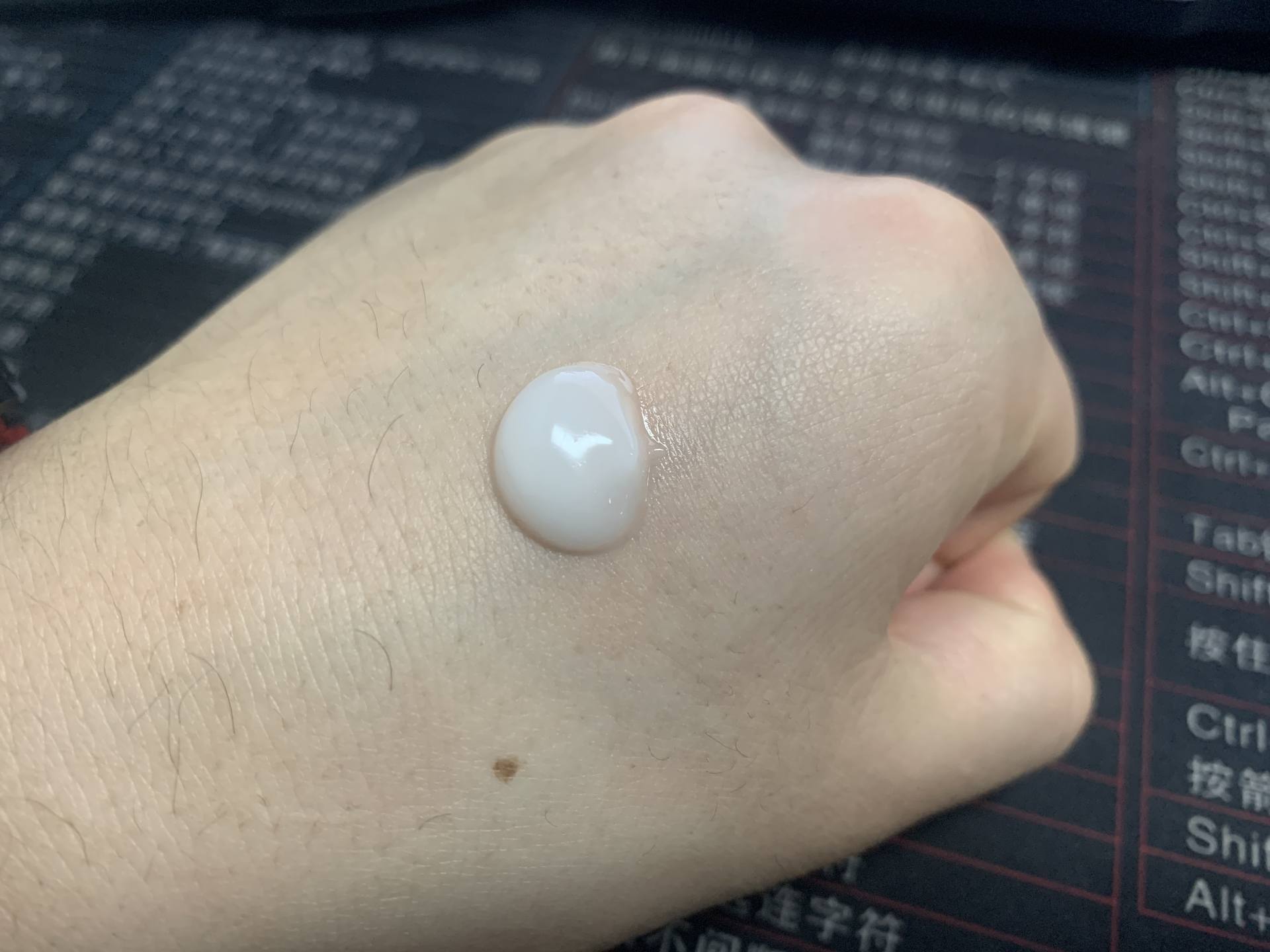 安熱沙膚感一般,白色乳液,有點(diǎn)水狀。涂抹時(shí)有細(xì)微顆粒感,膚感不算很好,但是勝在防護(hù)力超強(qiáng),防水能力較好。