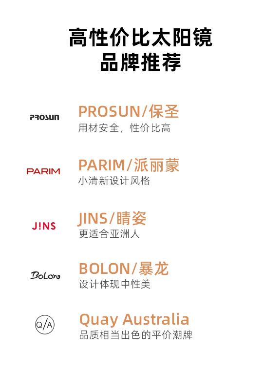 后,小蓋把上邊推薦的太陽鏡品牌都總結(jié)在這張圖: