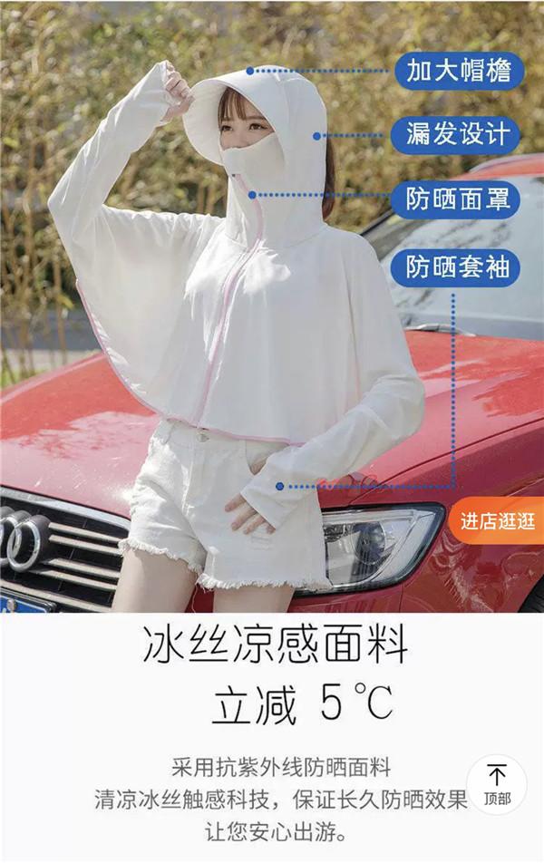 記者瀏覽電商平臺發(fā)現(xiàn), UPF40+等字樣只是常規(guī),不缺面料的科技感,諸如抗紫外線防曬面料、納米防曬纖維、冷凝鈦等字樣扎堆,還醒目標(biāo)注了涼感、透氣、防水、便攜等功能。