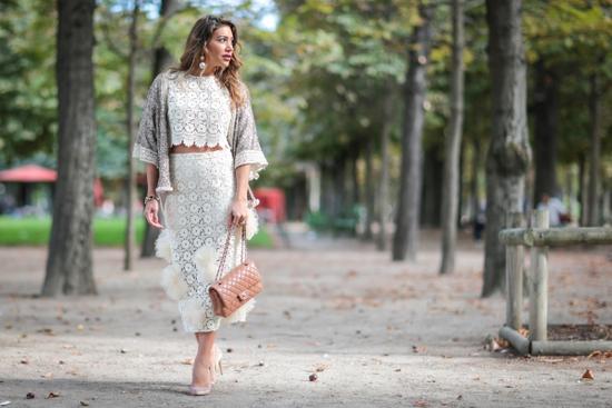 短款開衫也能穿出滿滿的溫順女人味,白色蕾絲套裝調(diào)配一件淡色印花開衫,嘉姐說還有什么樣的美能比TA更深入人心呢?