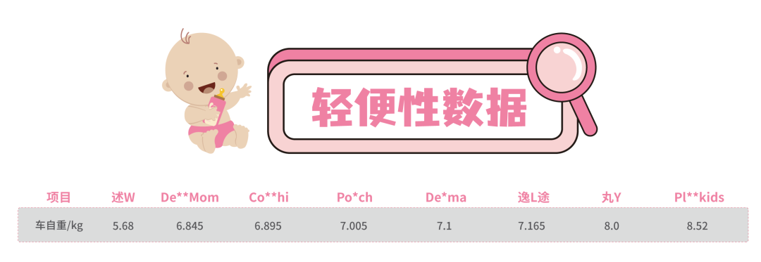 Pl**kids重,Co**hi、De**Mom、述W的車自重都小于7kg,述W輕,只有5.68kg。