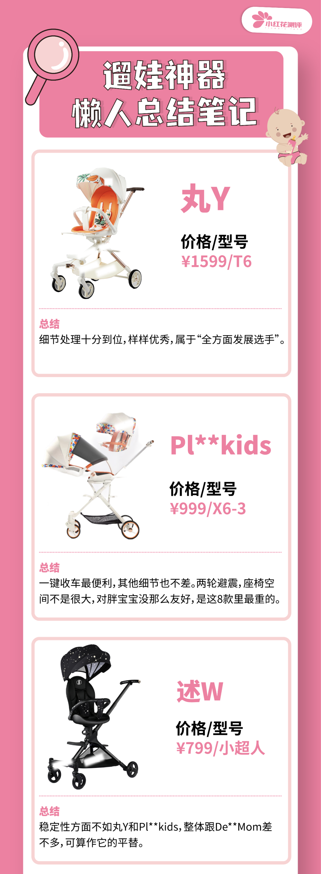 懶人總結經過上面的實測數(shù)據,結合實際使用體驗,花爸對這8款遛娃神器做出總結,可以動動小手保存。