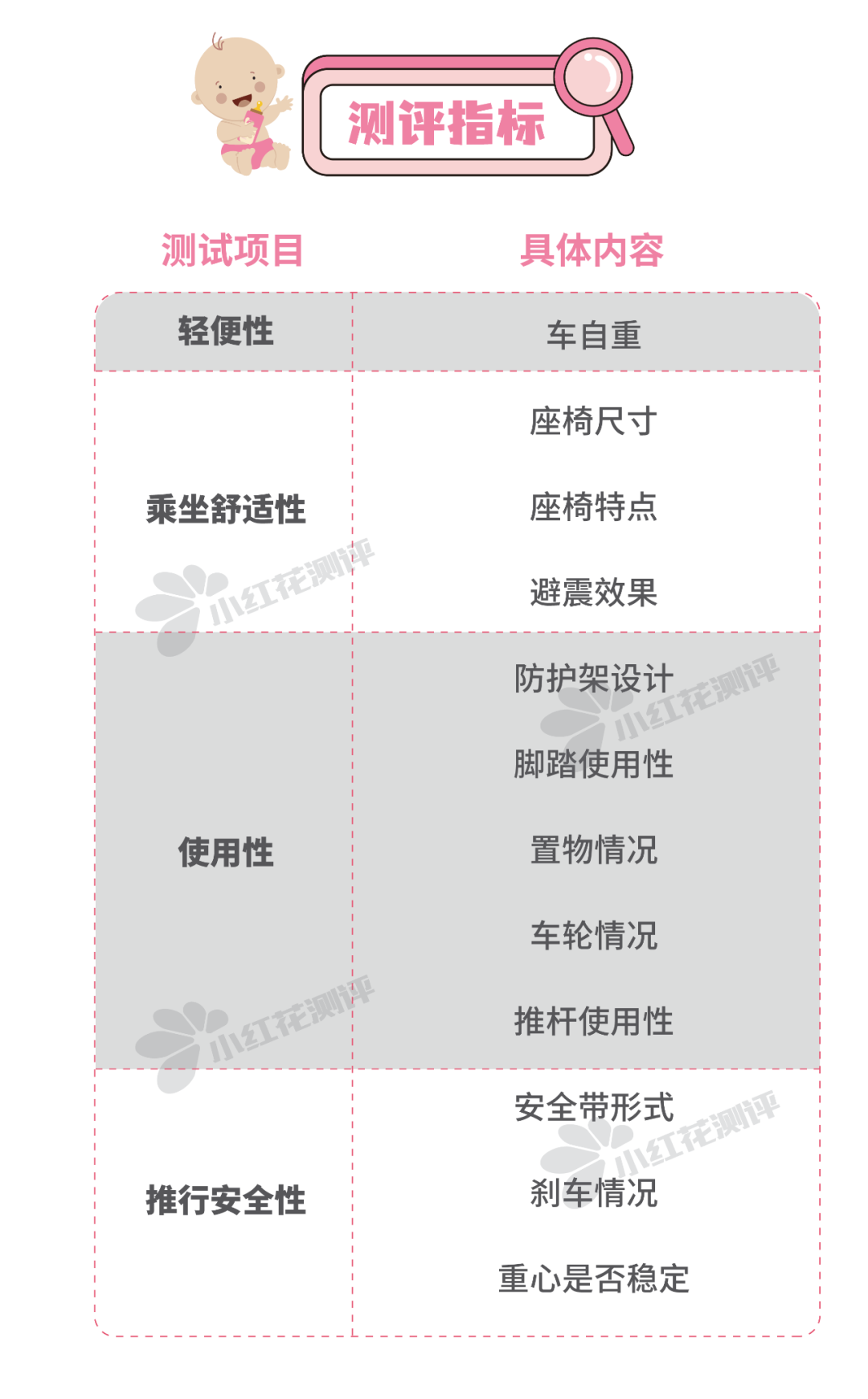 花爸在這里選擇了座椅尺寸、座椅特點、車身材質和避震效果這四個方面進行測評。