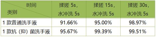 ② 不同的揉搓時(shí)間洗手液去除細(xì)菌果的對(duì)比:在30秒內(nèi),揉搓時(shí)間越久,洗手液去除細(xì)菌果越好。
