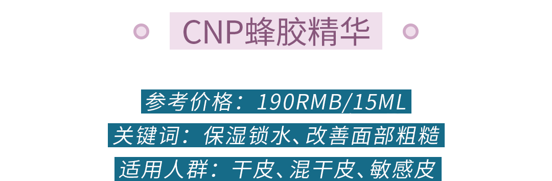 CNP是韓國比較熱門的藥妝品牌,它家有名的產(chǎn)品就是黑頭貼。這款CNP的蜂膠精華是IU同款!相信很多姐妹換季都有皮膚干燥泛紅等問題,別急,這款精華來救你!它主打保濕鎖水,還能改良面部粗糙!
