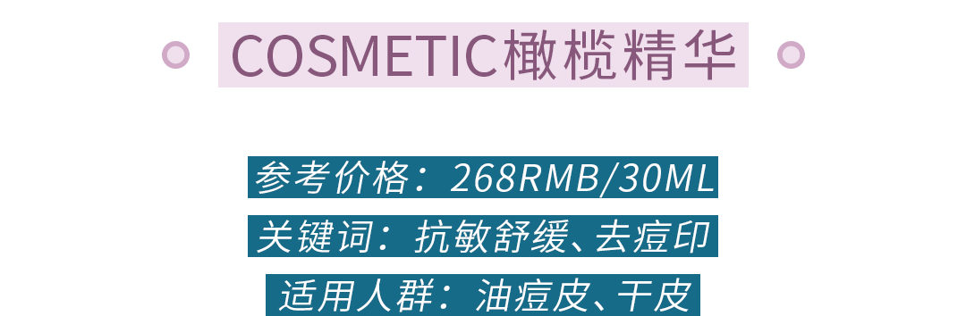 核心成分是油橄欖葉提取物和40%積雪草提取物,可以改良炎癥泛紅和炎癥后的色素沉著,退紅舒緩。
