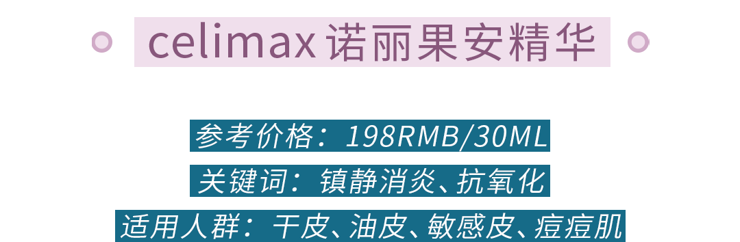 這款是韓國人超愛用的平價抗初老精華,Celimax走的是“溫和不刺激”的路線,在Oliveyoung銷量top1,這款精華主打熬夜肌提亮保濕,鎮(zhèn)定消炎的功效。