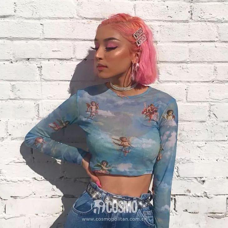 來(lái)自英國(guó)的Motelrocks,屬于Instagram brand。整體風(fēng)格偏向美式復(fù)古,衣服大多都是露臍緊身,深受年輕博主們的喜愛(ài)。經(jīng)典的藍(lán)色透視上衣配上小天使的印花,俏皮又性感。