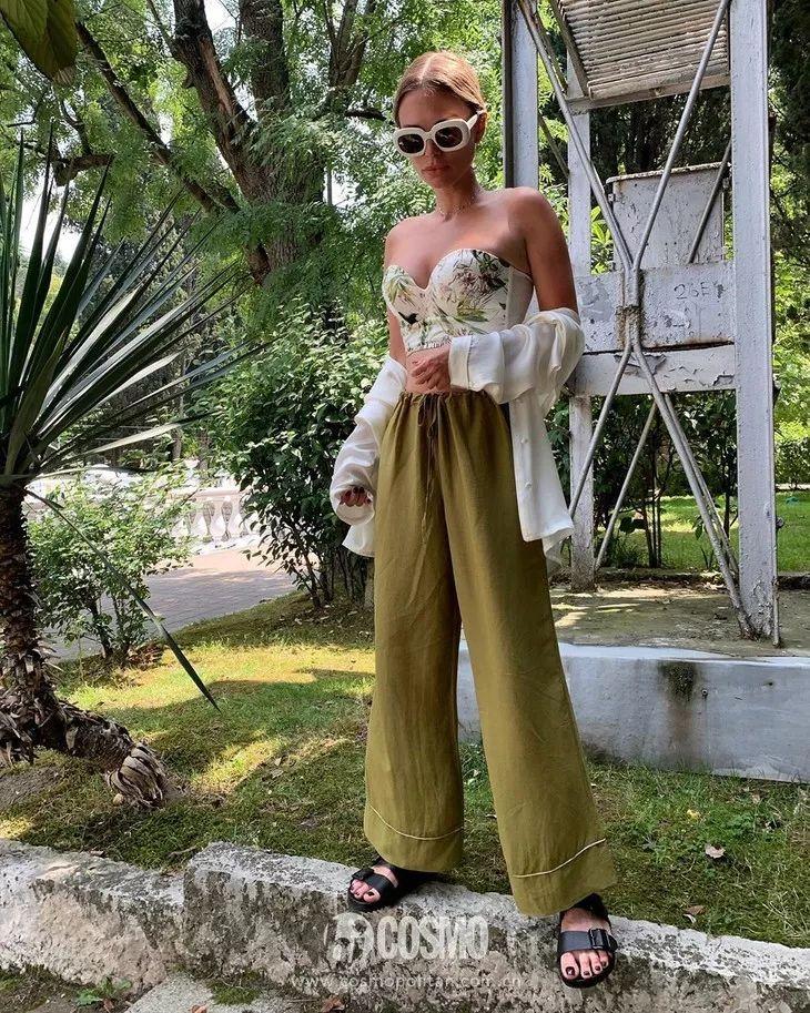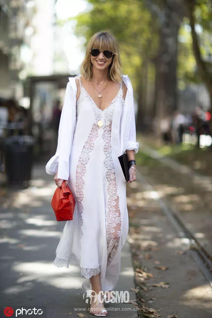 如果覺(jué)得上面這種面料還是熱,不妨選擇透視內(nèi)搭。面料更透氣,皮膚隱約可見(jiàn),透著夏天的小性感。透視款更多的是帶有印花的彩色,給悶熱的夏季帶來(lái)清爽,穿搭也變得更有趣味感。