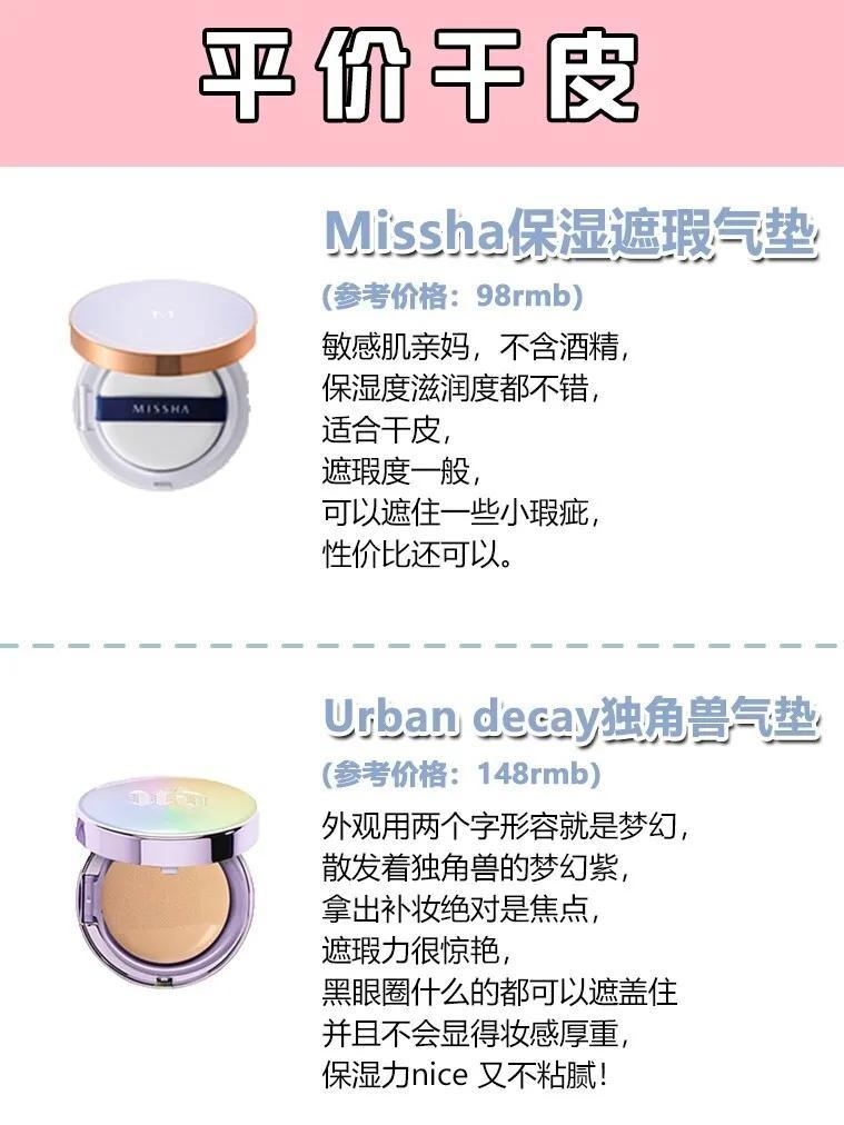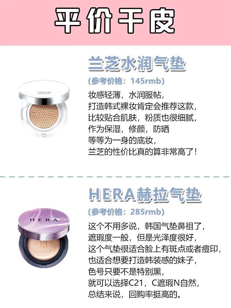 今天整理了16款適合干皮/混干皮女孩的熱門(mén)氣墊,平價(jià)都有哦