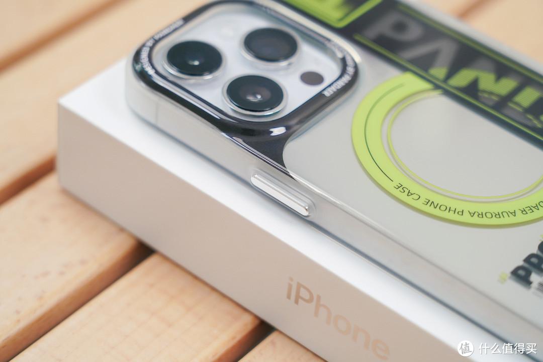 增強(qiáng)減震蜂窩內(nèi)襯,植入了38顆N52強(qiáng)磁體的MagSafe模組。四角加強(qiáng)了防護(hù)、邊框高于屏幕2mm、按鍵單獨(dú)襯墊手感很好。
