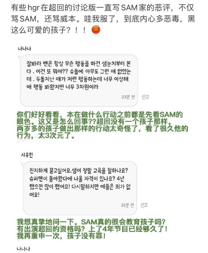 真得很難相信,以上這些惡意滿滿的評(píng)論,都是韓國(guó)本土觀眾用來評(píng)價(jià)威廉和本特利的。是的你沒有聽錯(cuò),就是有這種人,會(huì)將惡意發(fā)散到小孩子身上。