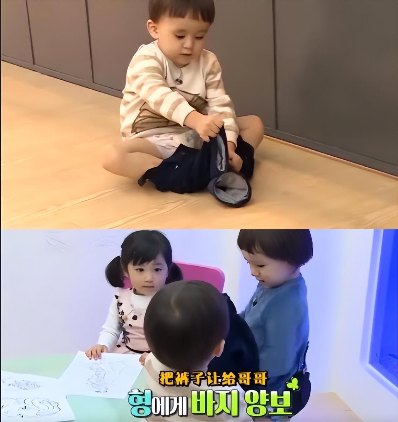 關(guān)鍵時(shí)刻,本特利主動(dòng)脫下了自己的褲子給哥哥,自己只穿著紙尿褲。