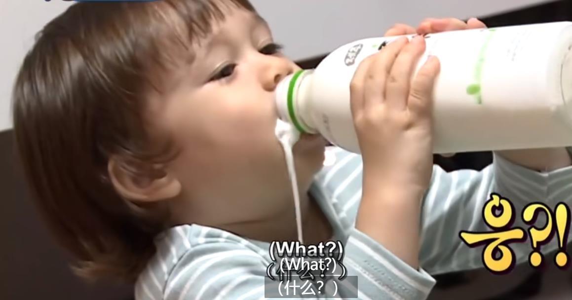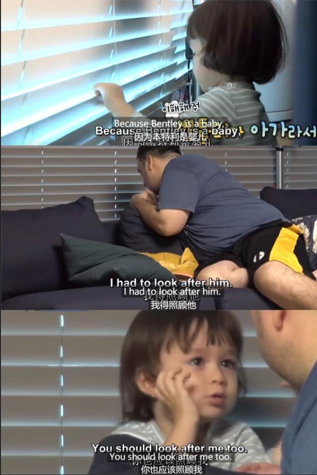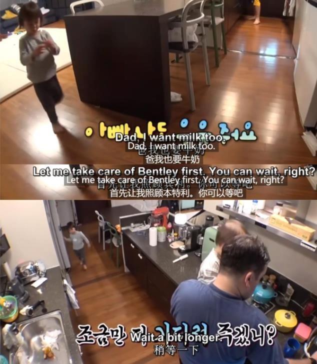 比如這一期,爸爸一下子拎著本特利玩轉(zhuǎn)圈圈,一下子抱著本特利喂牛奶。