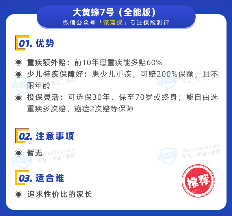 大黃蜂7號(全能版)由北京人壽承保,優(yōu)勢與注意事項(xiàng)如下: