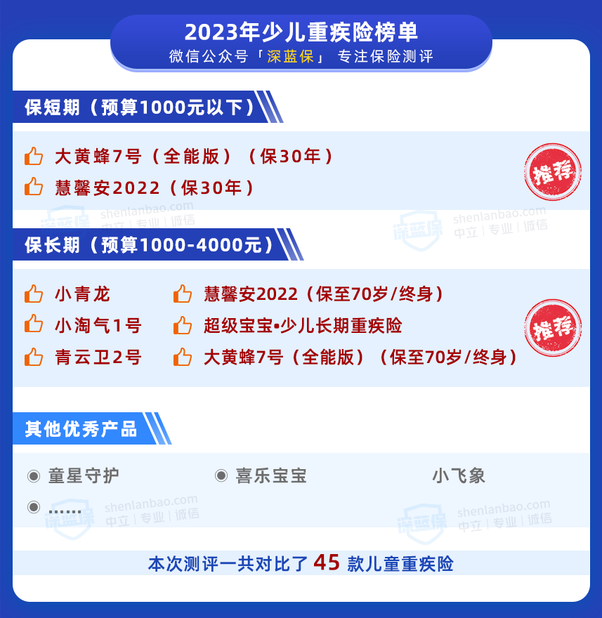 為了幫助大家挑選到高性價(jià)比的產(chǎn)品,我們仔細(xì)對比了45款少兒重疾險(xiǎn),得出了少兒重疾險(xiǎn)榜單,共分為兩部分: