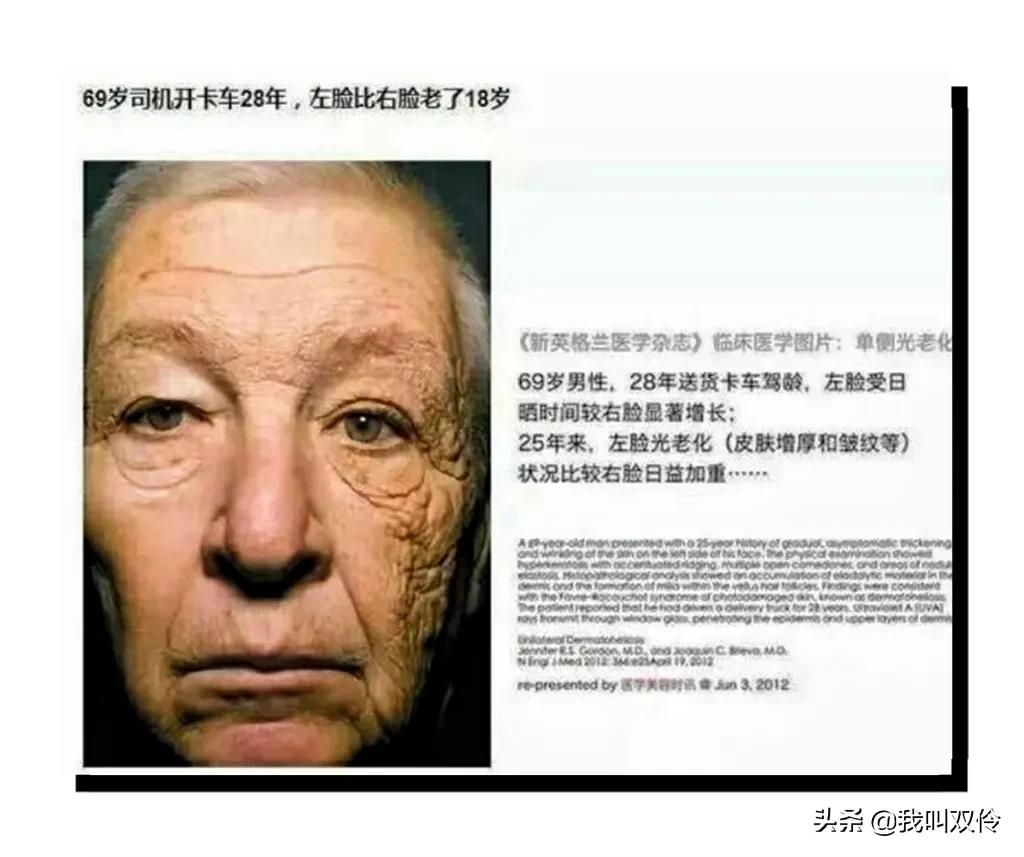 69歲司機(jī)開卡車28年,左臉受日曬時(shí)間比右臉長(zhǎng),左臉比右臉皮膚更衰老。左臉看起來比右臉老了18歲。