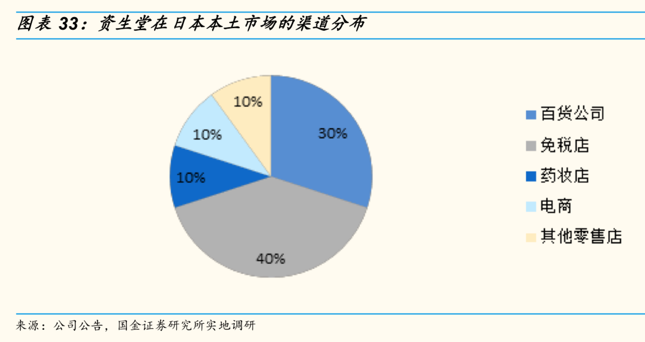 免稅店及百貨公司是資生堂在日本本土市場主要的渠道:免稅店占比約為40%,百貨渠道占比 30%,藥妝店占比約 10%,一般零售店占比10%,線上渠道直營網(wǎng)店(watashi)+代理網(wǎng)店合計大概占比為 10%。資生堂旗下產(chǎn)品基本都采用直接販 的模式 ,代理店相對較少,日本幾乎全部的百貨公司和藥妝店基本上都會銷售資生堂的產(chǎn)品。