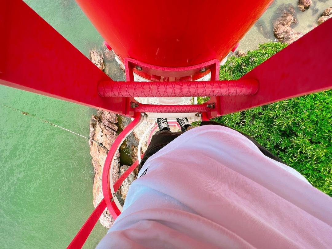 這周圍高的建筑,或許是村民5層樓高的自建房,因此,登高瞭望的機會怎能錯過!我一手一腳小心翼翼地攀上燈塔,海陵島的美景盡收眼底。只不過,微風(fēng)輕拂加上我的體重,讓燈塔頂部有些許晃動,要不是晃這幾下,陽江的美景差點兒讓我忘了自己恐高。
