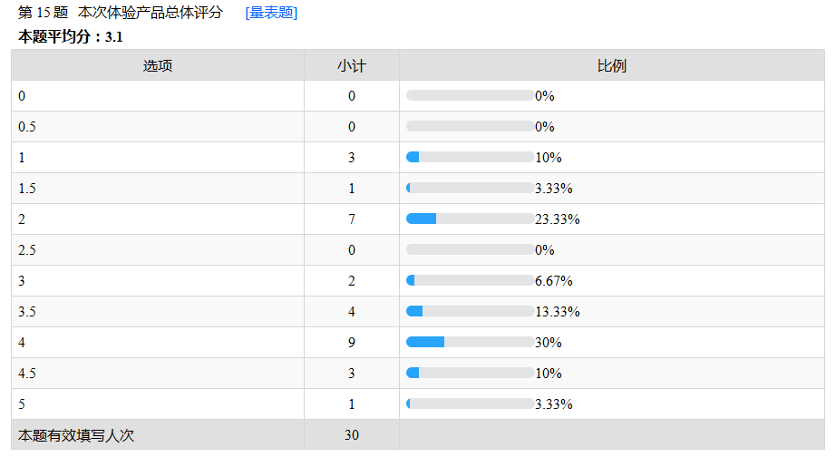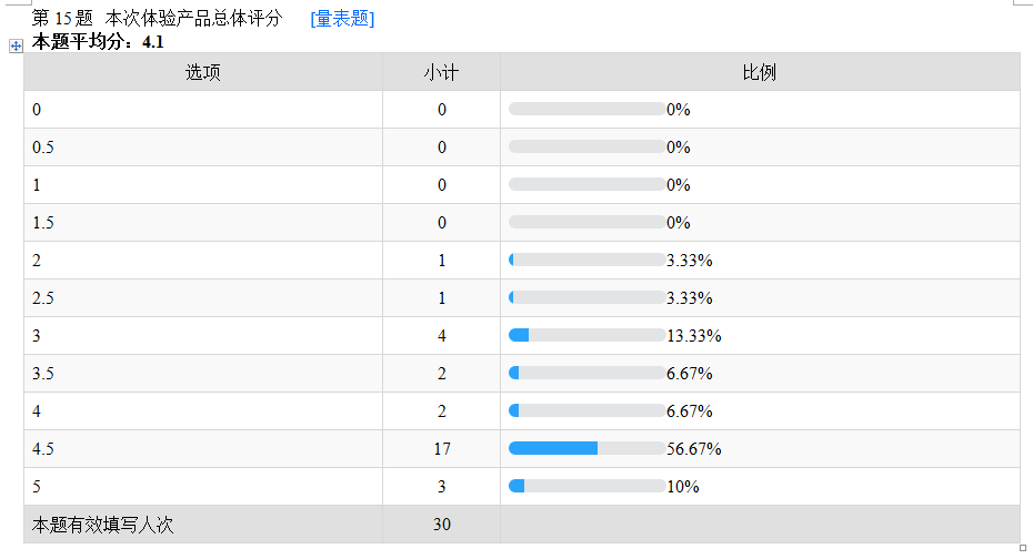 從30名寶媽對評分結果來看,只有爸爸的選擇是一款評分超過4分的產(chǎn)品,平均得分為4.1分。73.3%的體驗者給出了4分以上的評分。