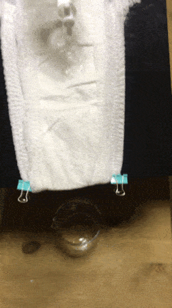 2、表現(xiàn)較差的,是國產(chǎn)品牌雀氏和美國品牌幫寶適,在第一杯后即滑落。幫寶適加液后表面能看見水珠,說明吸收速度是相對較差的。原因可能跟面層的柔軟程度和導流效果有關。