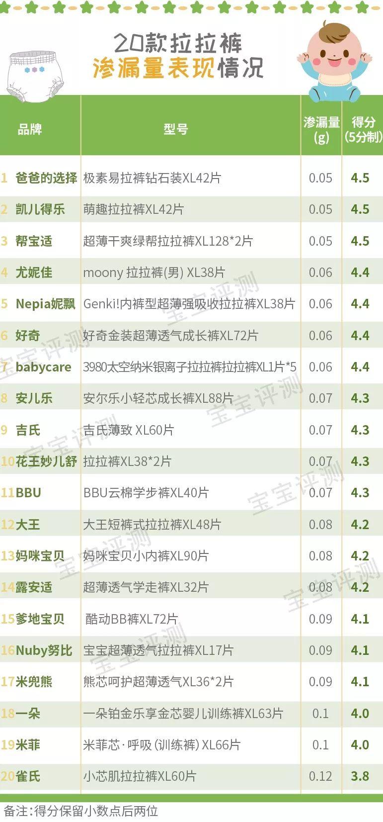 1、表現(xiàn)好的是爸爸的選擇、凱兒得樂、幫寶適,得分均為4.5分,雀氏則表現(xiàn)略差,只得3.8分。