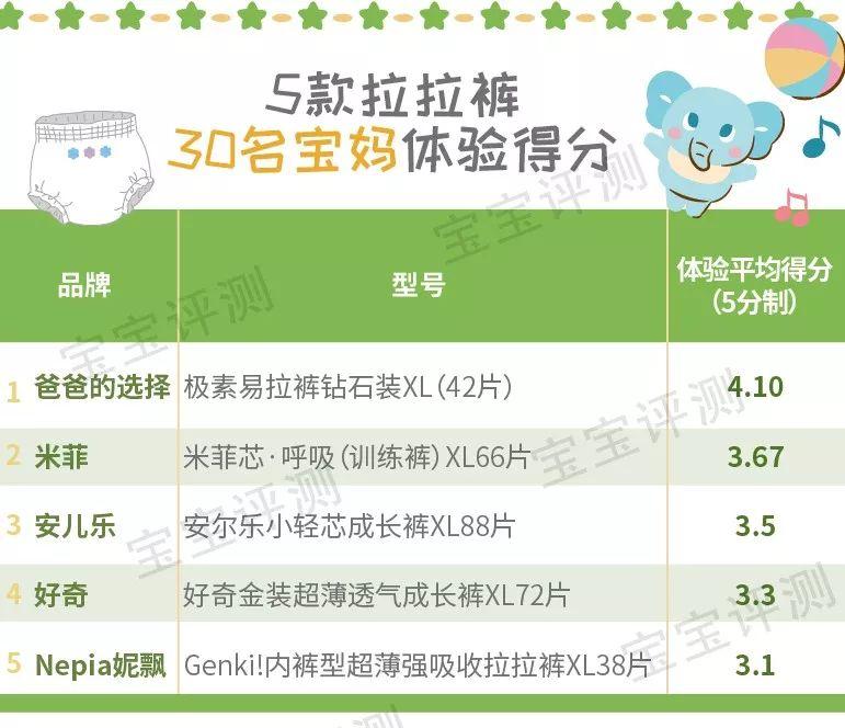 1、排在前5名的產(chǎn)品均得分在4分以上。分別是安兒樂、米菲、妮飄Genki!、好奇、爸爸的選擇。