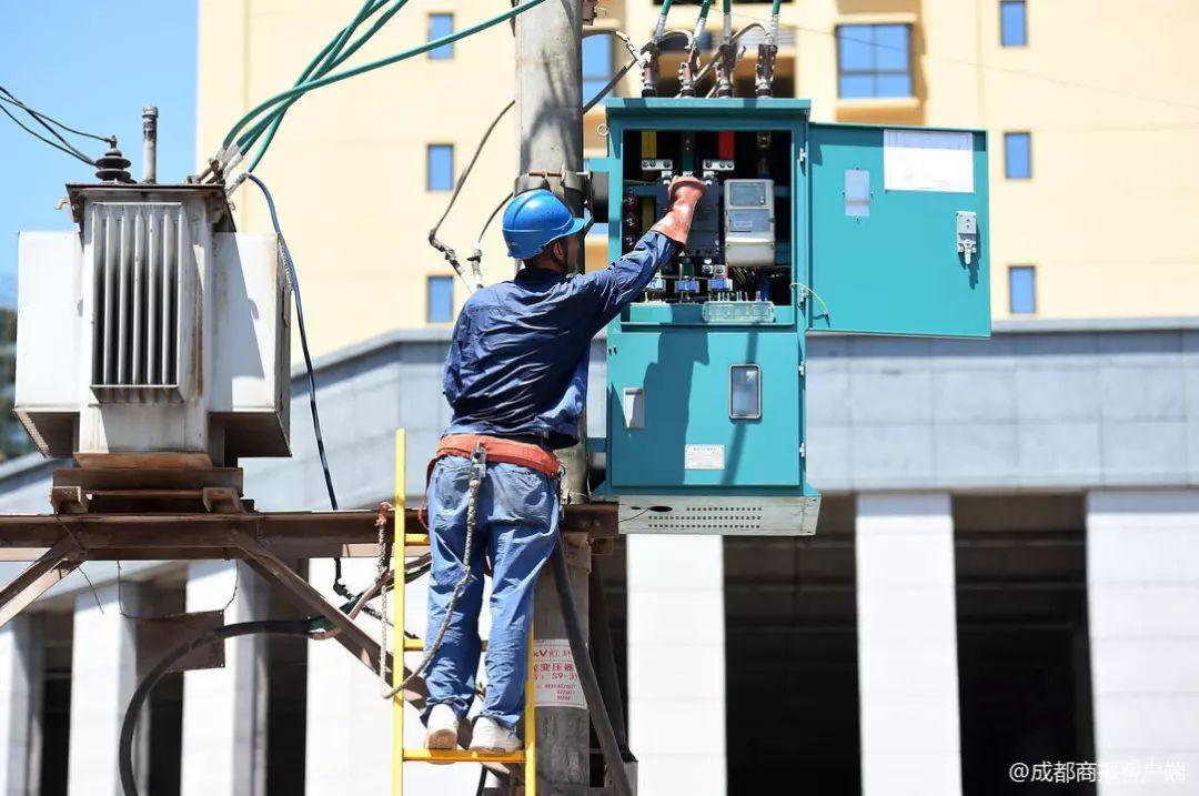登桿檢修的電力工人衣服已經(jīng)濕透,可以擰出水來↓