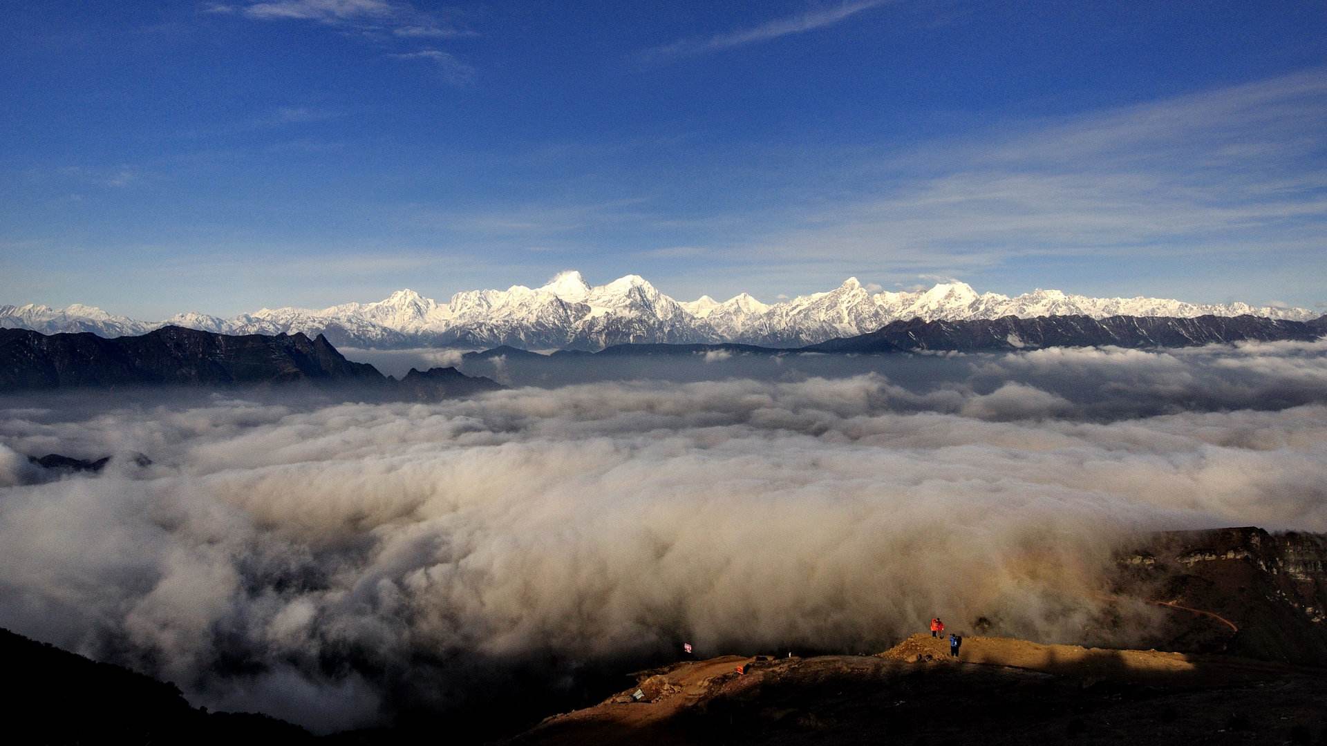 多少人被牛背山的壯觀吸引著,連綿的貢嘎雪山映襯在白色云海之上,初升的太陽把雪山照的一片金紅,那一刻你的心是否有被撞擊的感覺。牛背山的云海和雪山是獨特的,很難在其他地方看到云海之上的如此美麗的雪山,而太陽又那么巧從雪山的對面升起,把雪山照得那么美!