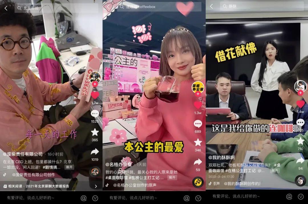 再者是獨(dú)具創(chuàng)意的場(chǎng)景化營(yíng)銷。配合新品和主題,連咖啡在抖音發(fā)起了#在桃公主打工記 話題挑戰(zhàn),邀請(qǐng)抖音垂類達(dá)人共創(chuàng)了一系列“公主風(fēng)工位改造”、“趣味化辦公室劇情”等爆款視頻,將新品植入辦公室場(chǎng)景,形成產(chǎn)品與場(chǎng)景的深度綁定。