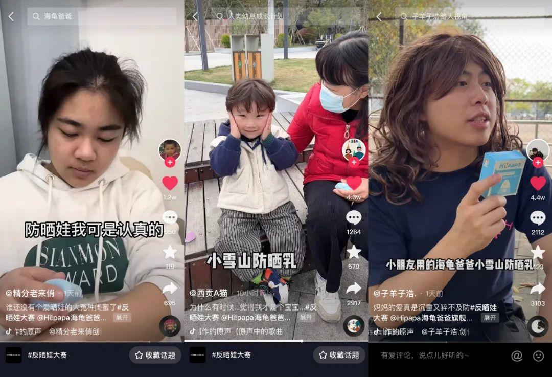 內(nèi)容方面,海龜爸爸重點(diǎn)圍繞其明星產(chǎn)品“貝瑪小雪山兒童防曬”推出了品牌話題#反曬娃大賽。洞悉家長(zhǎng)們習(xí)慣性“曬娃”的心理,“反曬娃大賽”抓住受眾注意力,激發(fā)用戶分享欲的同時(shí),“反曬娃”與產(chǎn)品主要賣點(diǎn)“兒童防曬”相呼應(yīng),有效提升了品牌的親切感。此外,海龜爸爸也邀請(qǐng)了母嬰、美妝類達(dá)人進(jìn)行內(nèi)容共創(chuàng),輸出趣味劇情、專業(yè)種草視頻,以極具共鳴的內(nèi)容擴(kuò)大聲量。