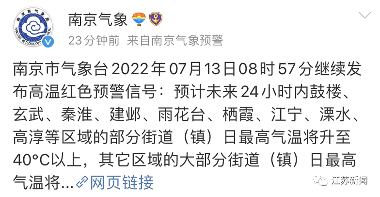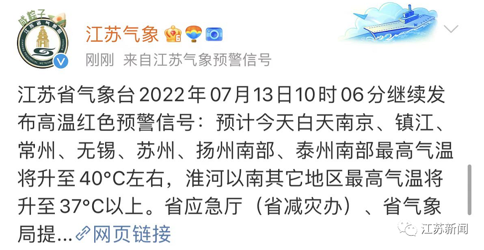 高溫紅色預(yù)警連發(fā)!江蘇疾控緊急提醒剛剛