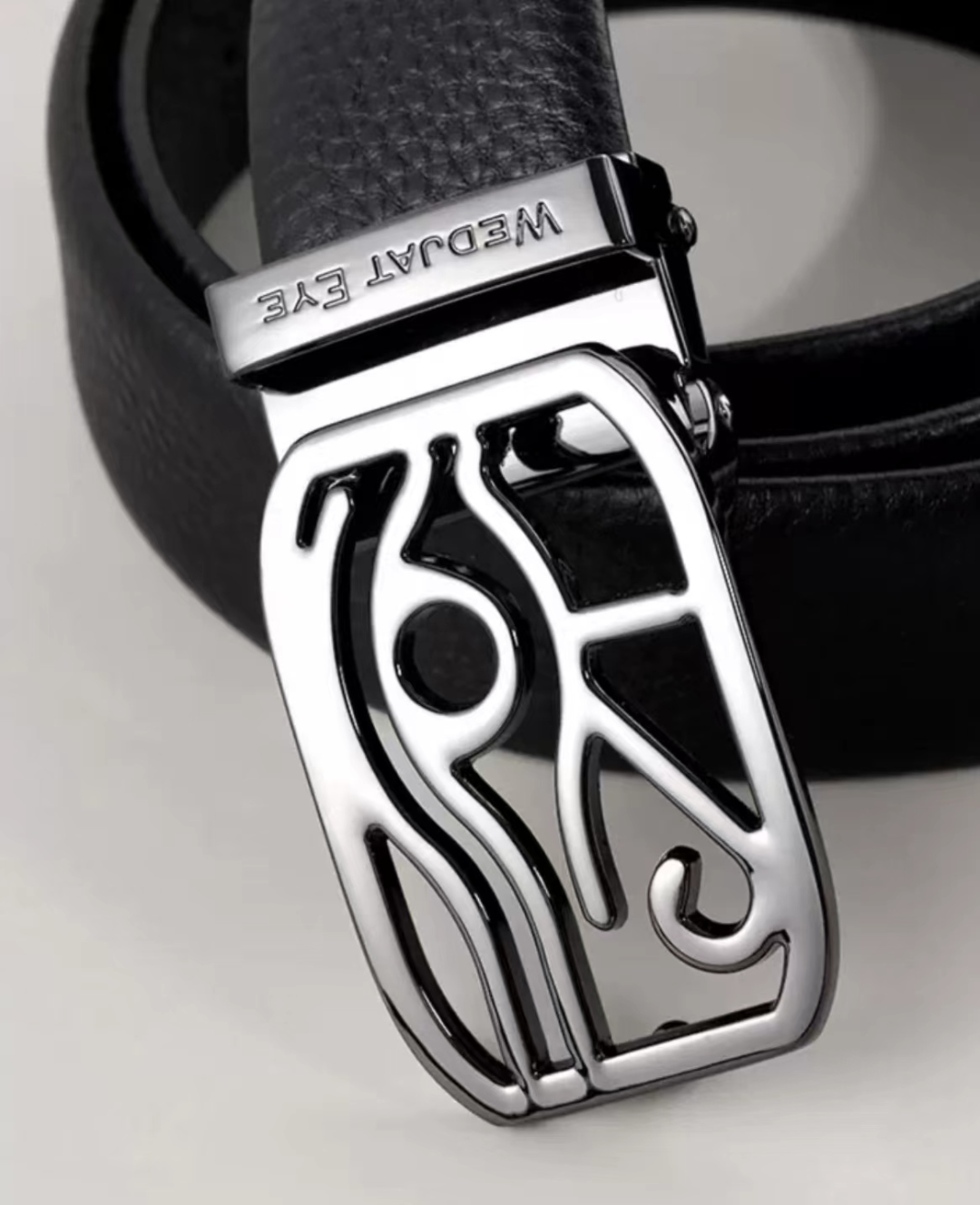 這款皮帶的設(shè)計(jì)靈感源于其館藏的荷魯斯之眼胸飾,荷魯斯之眼是一個(gè)自古埃及流傳到現(xiàn)在的符號(hào),被認(rèn)為是一種擁有非凡能力的符,有辨別善惡是非、捍衛(wèi)健康幸福的能力。