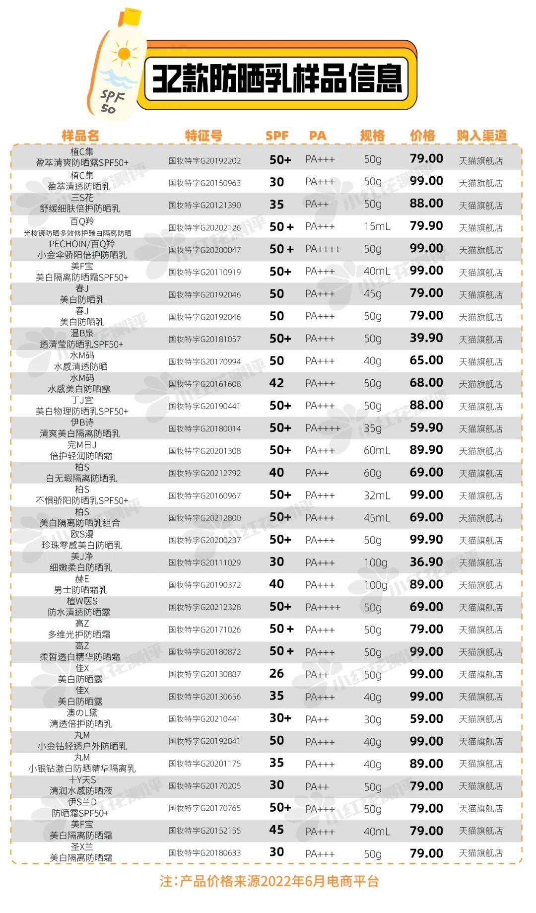 根據各大電商平臺的銷量和網友的反饋,花爸選出了32款價格在百元以內的防曬霜。分別來自22個品牌不同型號的產品。