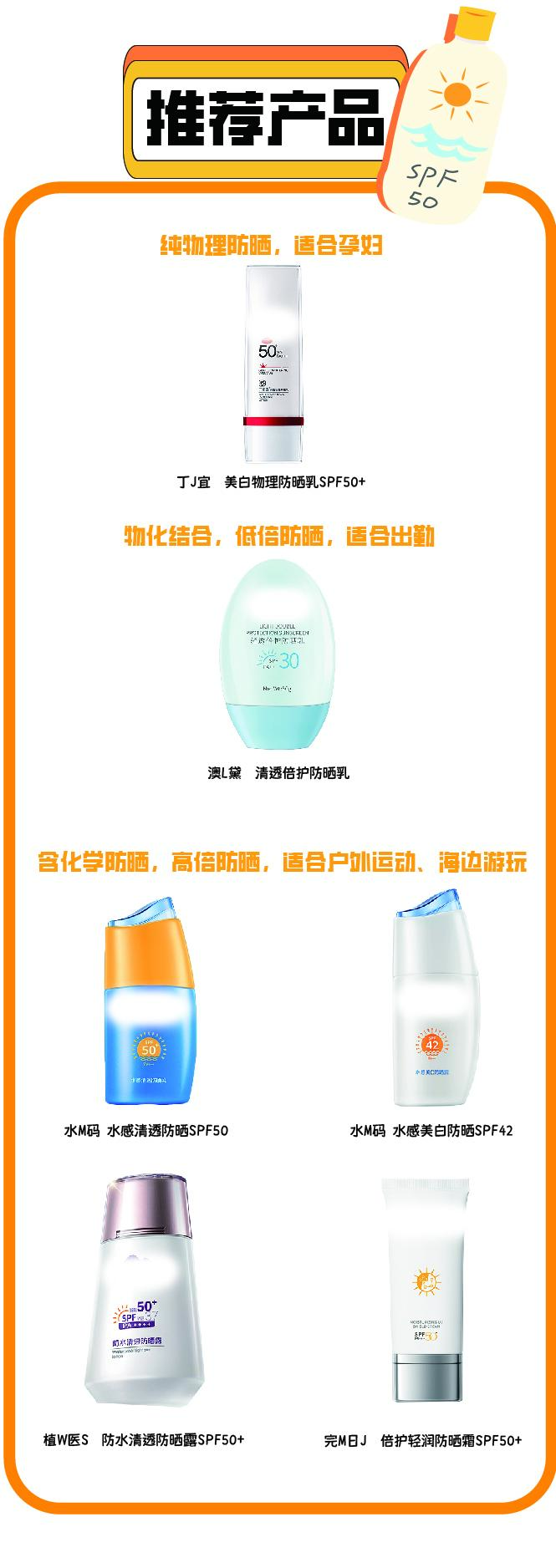 從粘膩程度、膚感評價、泛白程度等綜合考慮,水M碼 清透防曬SPF50、水M碼 水感防曬SPF42、丸M 小銀鉆激白SPF35、春J 50gSPF50、春J 45gSPF50、植C集 清爽SPF50+、完M日J 倍護SPF50+、佳X SPF35表現比較好。